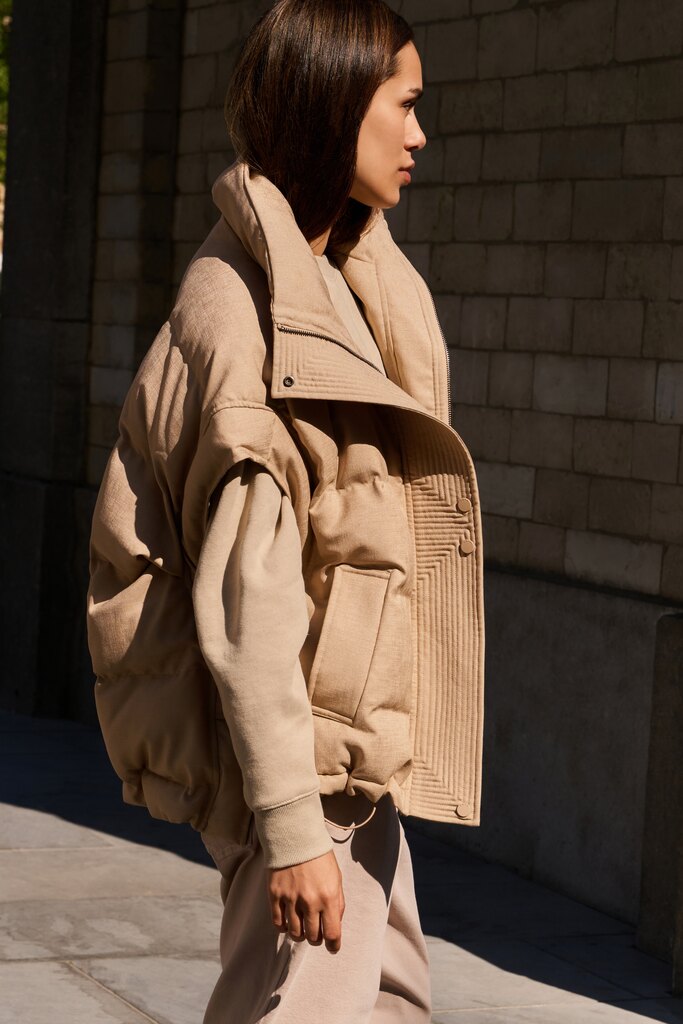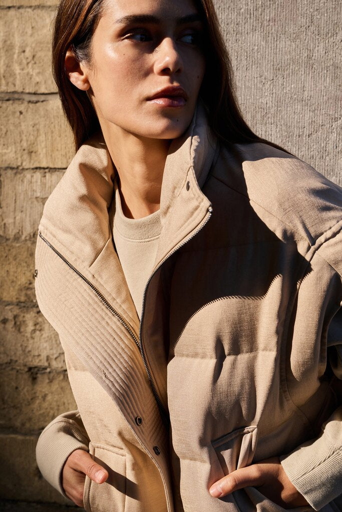 • Lade das Bild in den Galerie-Viewer, YAYA - gepolsterte Steppweste in Beige Gold