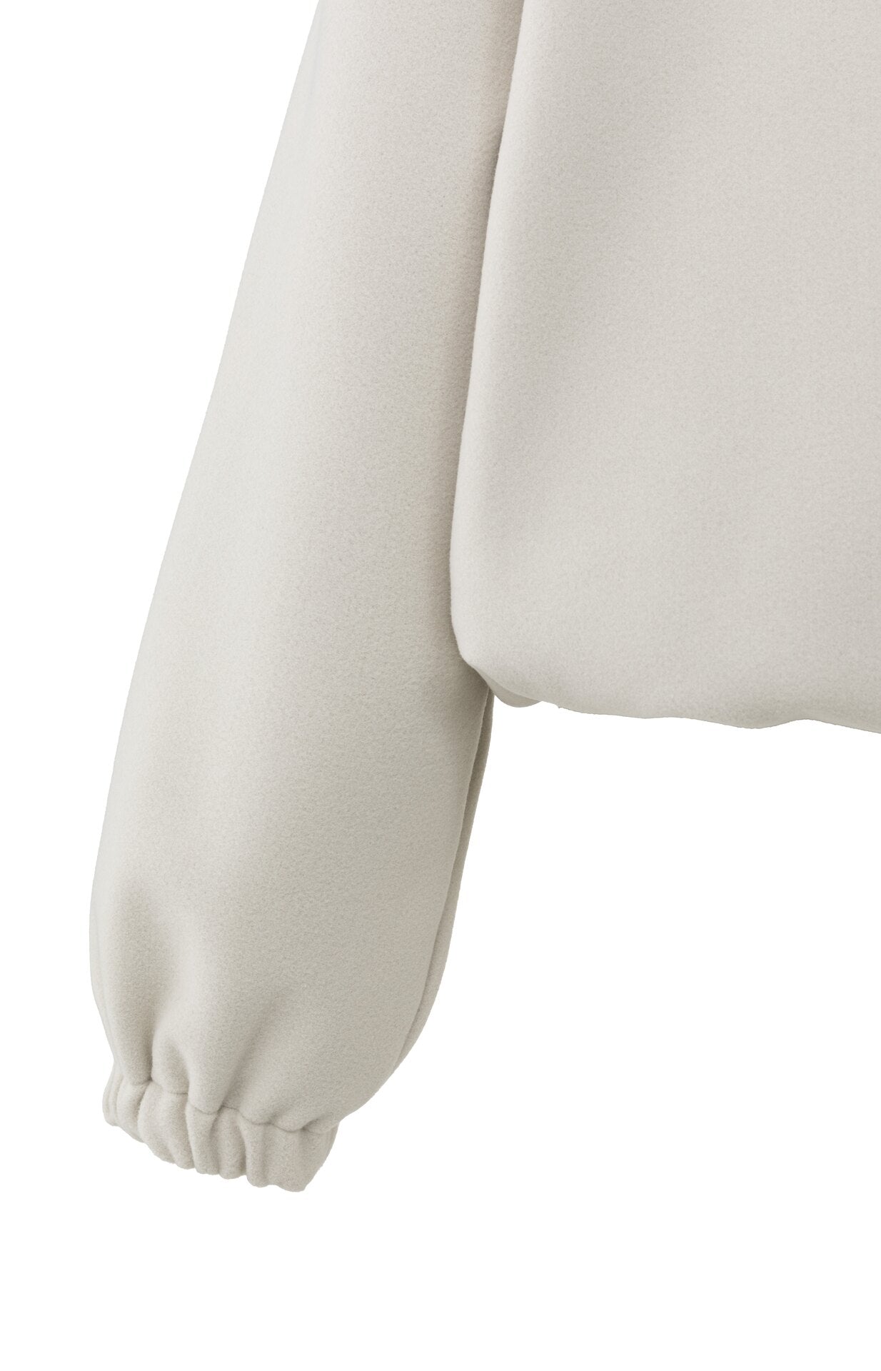 - hat einen hohen Kragen mit Reißverschluss und überschnittene Schultern