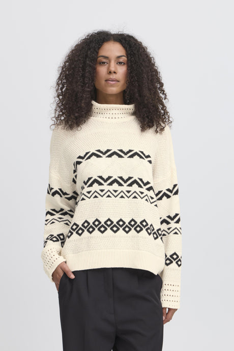 ICHI - Strickpullover Barisa Black White